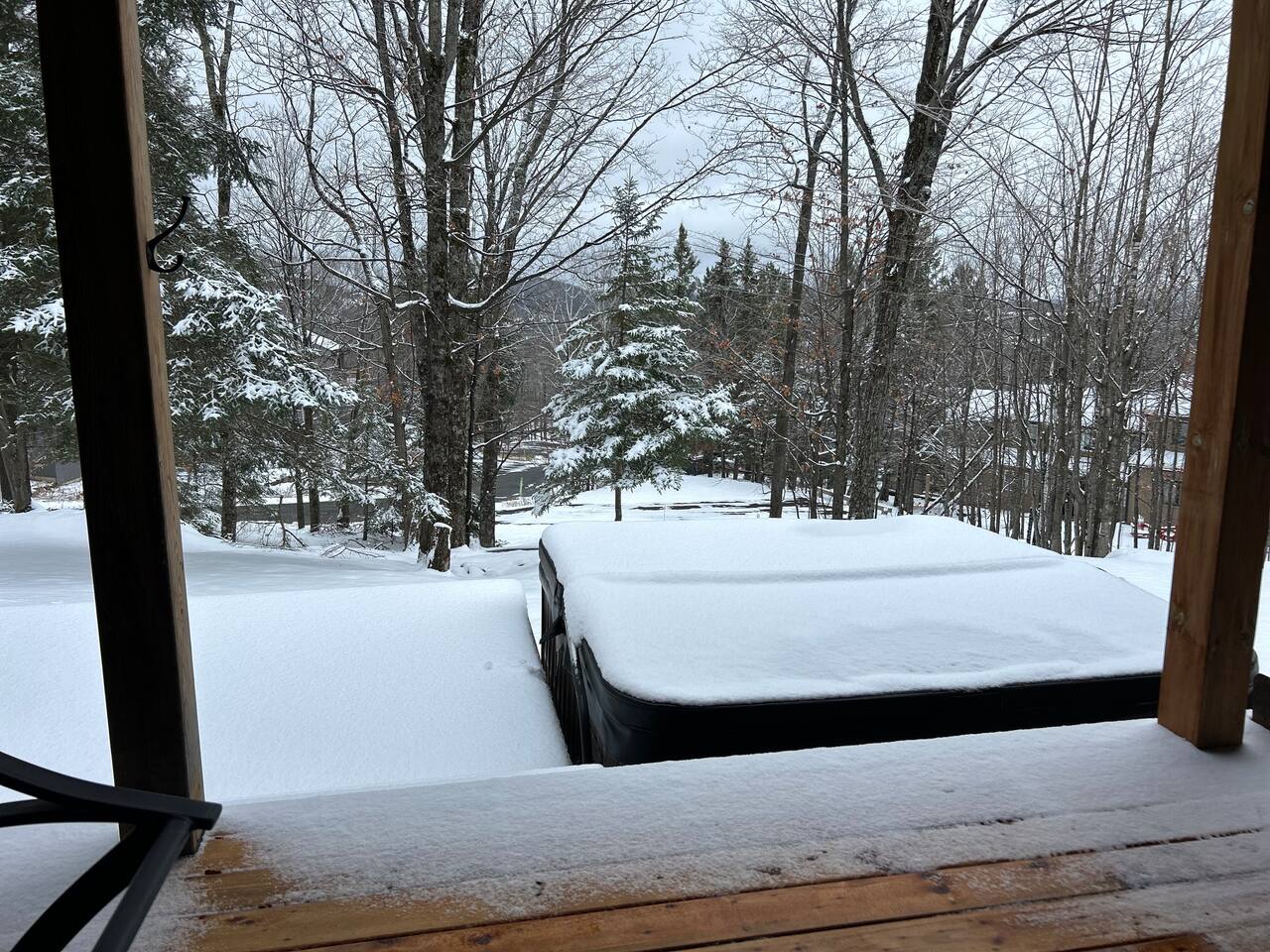 En entrant, vous serez accueilli par la chaleur des murs en bois, vous invitant à vous imprégner de l’ambiance douillette du lieu. La cheminée en pierre accentue le charme traditionnel du chalet, vous faisant sentir comme chez vous. Imaginez-vous réunis avec vos proches dans l’espace ouvert, à vous reconnecter et à profiter du calme et de l’intimité offerts par la forêt environnante. Retirez-vous dans l’une des deux chambres privées, chacune offrant un havre de paix pour vous reposer et vous ressourcer. La cuisine entièrement équipée attend vos créations culinaires. Préparez vos repas tout en admirant la vue sur les arbres. Après une journée d’exploration ou de détente, plongez dans le spa sur la terrasse privée à l’arrière, laissez vos soucis s’envoler et profitez de la tranquillité des lieux.