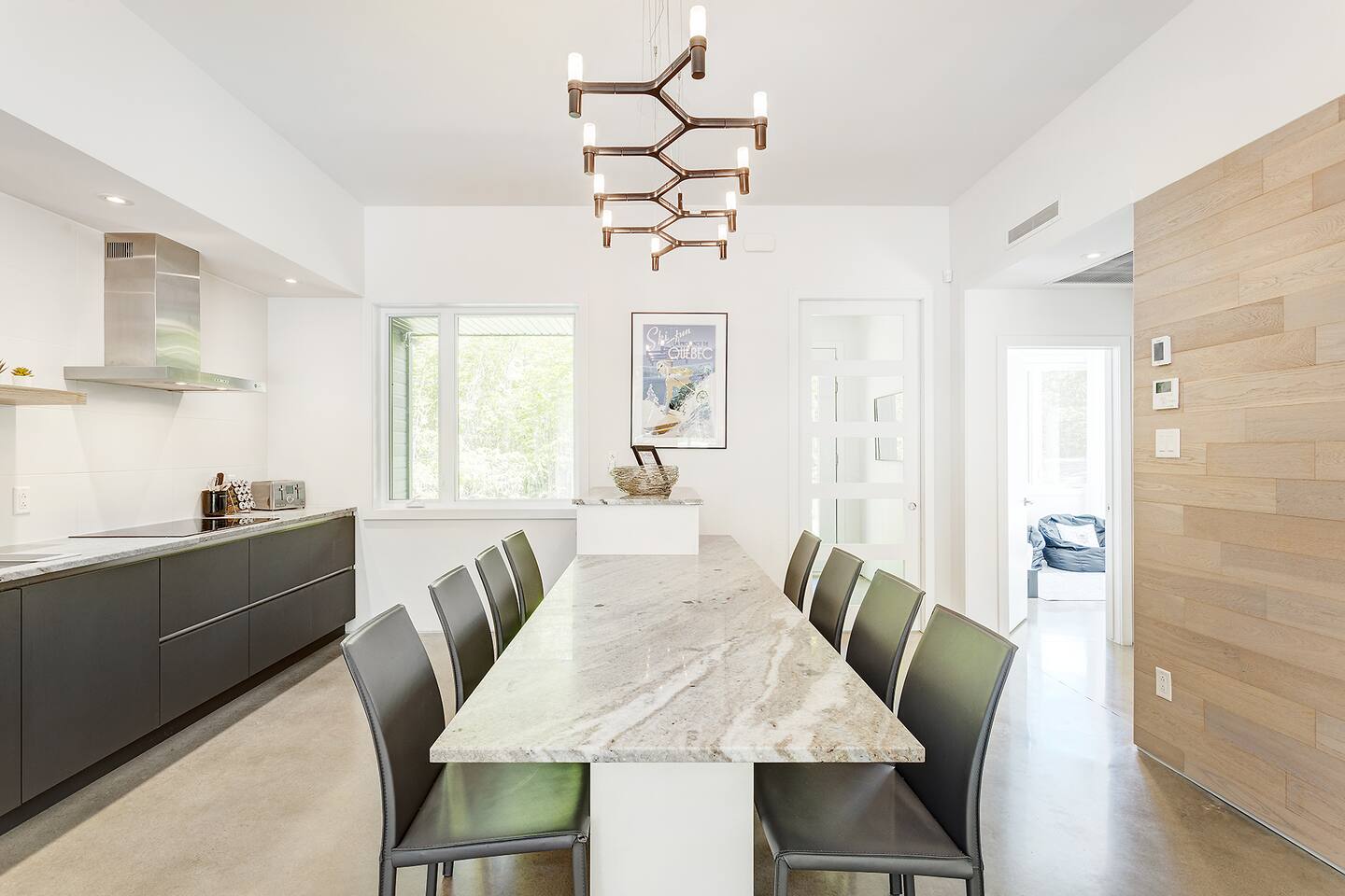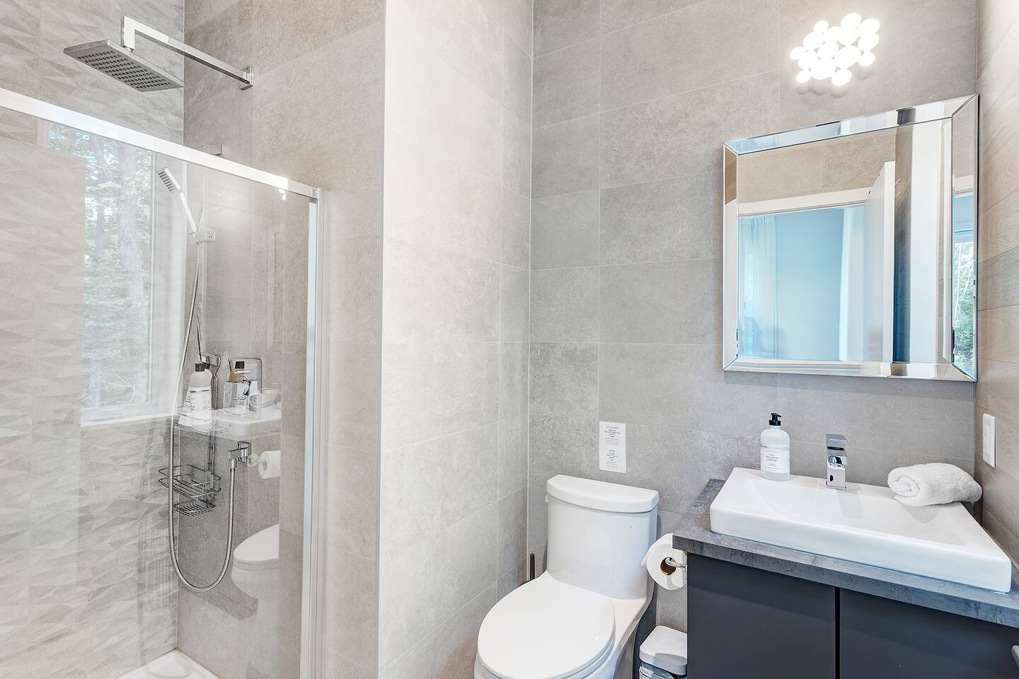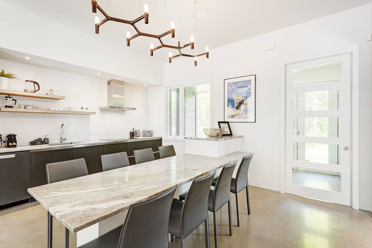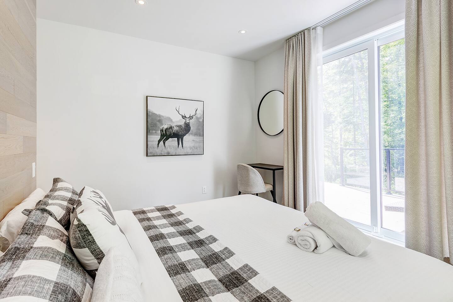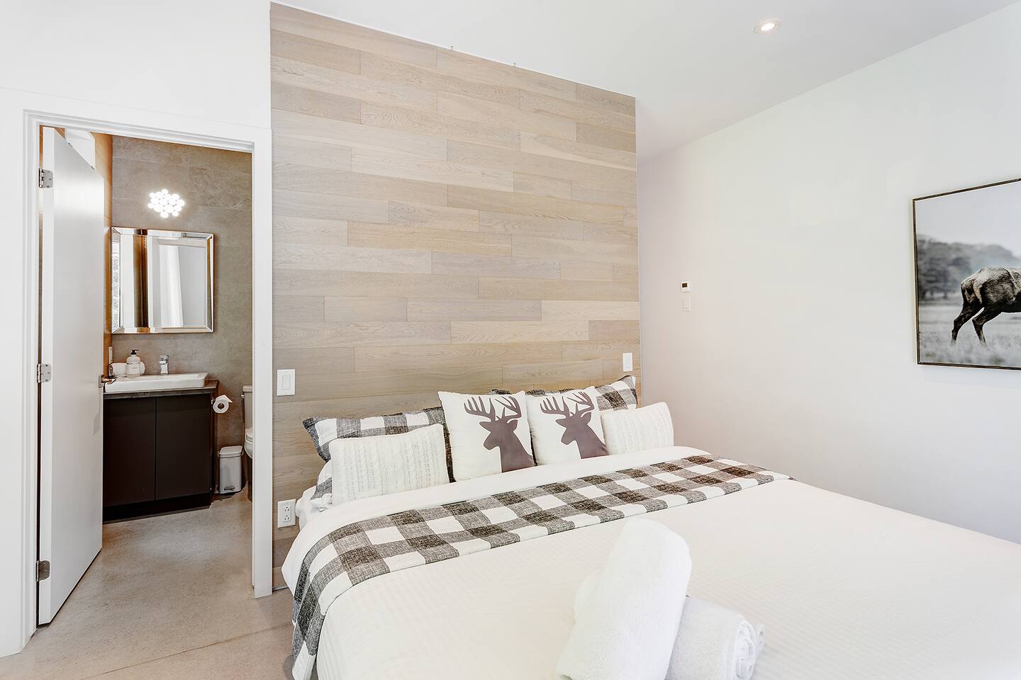 Chalet moderne pour 8 personnes 4 chambres 3 salles de bain Borne de recharge pour véhicule électrique (jusqu'à 40 ampères) avec prise J1772 Cuisine gastronomique entièrement équipée (Nespresso/Keurig/Raclette et plus) Filtre à eau UV pour toute la maison Salle à manger Salon avec télé intelligente, Netflix, Bell Fibe, Crave & HBO Salle enfants/ados avec télé intelligente + XboxOne BBQ Spa Foyer Planchers chauffants radiants Internet haute vitesse Haut-parleurs au plafond avec Spotify Stationnement privé (4 voitures) À 10 min en voiture de Mont-Tremblant (vue sur la montagne depuis le chalet) Entrez dans le chalet et laissez-vous séduire par l'élégance moderne et l'espace. L'intérieur est magnifiquement conçu et soigneusement aménagé avec toutes les commodités nécessaires pour un séjour inoubliable. L'espace marie le style de vie moderne à la beauté de la nature. L'intérieur, créé par le célèbre bureau de design Dafnadesigns®, met en valeur des éléments naturels et écologiques qui s'harmonisent parfaitement avec l'extérieur. Minimaliste mais élégant, la maison est meublée et équipée pour mettre en valeur la beauté environnante. Commencez vos matinées avec nos machines à café Nespresso et Keurig ; préparez de délicieux repas dans notre cuisine ultramoderne avec plaque à induction et four mural autonettoyant ; un véritable rêve pour les passionnés de cuisine. Rassemblez-vous autour de la table de salle à manger éclairée par un lustre moderne "Nemo Crown Plana" conçu par Jehs + Laub et inspiré du concept de continuité de M.C. Escher. La cuisine ouverte sur le salon offre des vues spectaculaires grâce à de grandes fenêtres du sol au plafond qui fusionnent l'intérieur et l'extérieur. Profitez de soirées cocooning devant le magnifique foyer en pierre, en regardant vos émissions préférées sur la Smart TV équipée de Bell Fibe et Netflix. Le salon spacieux et accueillant s'ouvre sur une grande terrasse (850 pi²), avec spa, salon extérieur, table à manger et chaises longues pour bronzer. Que vous souhaitiez profiter du soleil, vous détendre le soir avec un cocktail ou partager un repas en famille autour du barbecue, notre terrasse extérieure répondra à toutes vos envies. Préparez-vous à passer des nuits paisibles dans l'une de nos quatre chambres spacieuses et confortables. Chaque chambre est équipée de matelas hybrides en latex de Literie Laurier, pour un repos optimal. Deux chambres disposent de lits king-size et d'une salle de bain attenante moderne avec douche pluie et accès direct à la terrasse extérieure. Les deux autres chambres offrent la flexibilité de deux lits simples ou d'un lit king-size, et partagent une salle de bain complète moderne avec baignoire. Restez confortable toute l'année grâce à des systèmes de chauffage et climatisation à la fine pointe. Le chauffage au sol radiant est contrôlable dans chaque pièce, avec chauffage d'appoint dans les salles de bain pour un confort maximal. Deux thermopompes centrales contrôlent séparément les ailes gauche et droite du chalet. Et pour respirer l'air pur de la nature, l'échangeur d'air fournit un apport continu d'air frais extérieur. Nous avons hâte que vous découvriez l'équilibre parfait entre luxe moderne et beauté naturelle dans notre oasis de Tremblant. Faites de ce chalet votre chez-vous, profitez-en, détendez-vous et créez des souvenirs inoubliables !