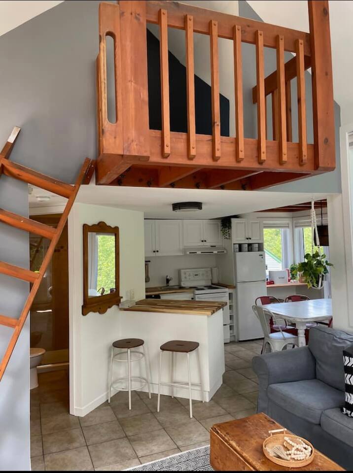 Condo de village chaleureux et élégant. Idéalement situé, à quelques pas de la télécabine et du télésiège. Salon pittoresque avec plafond cathédrale sur deux étages, grandes fenêtres partout, décoration soignée. Il s'agit de la plus grande unité des condos Chouette !! Tout ce qu'il vous faut pour un séjour parfait à Tremblant ! Que ce soit pour une escapade en couple, des vacances en famille ou une pause en solo bien méritée, notre refuge à Tremblant saura vous séduire ! Les animaux à quatre pattes sont également les bienvenus ! Numéro CITQ : 247811