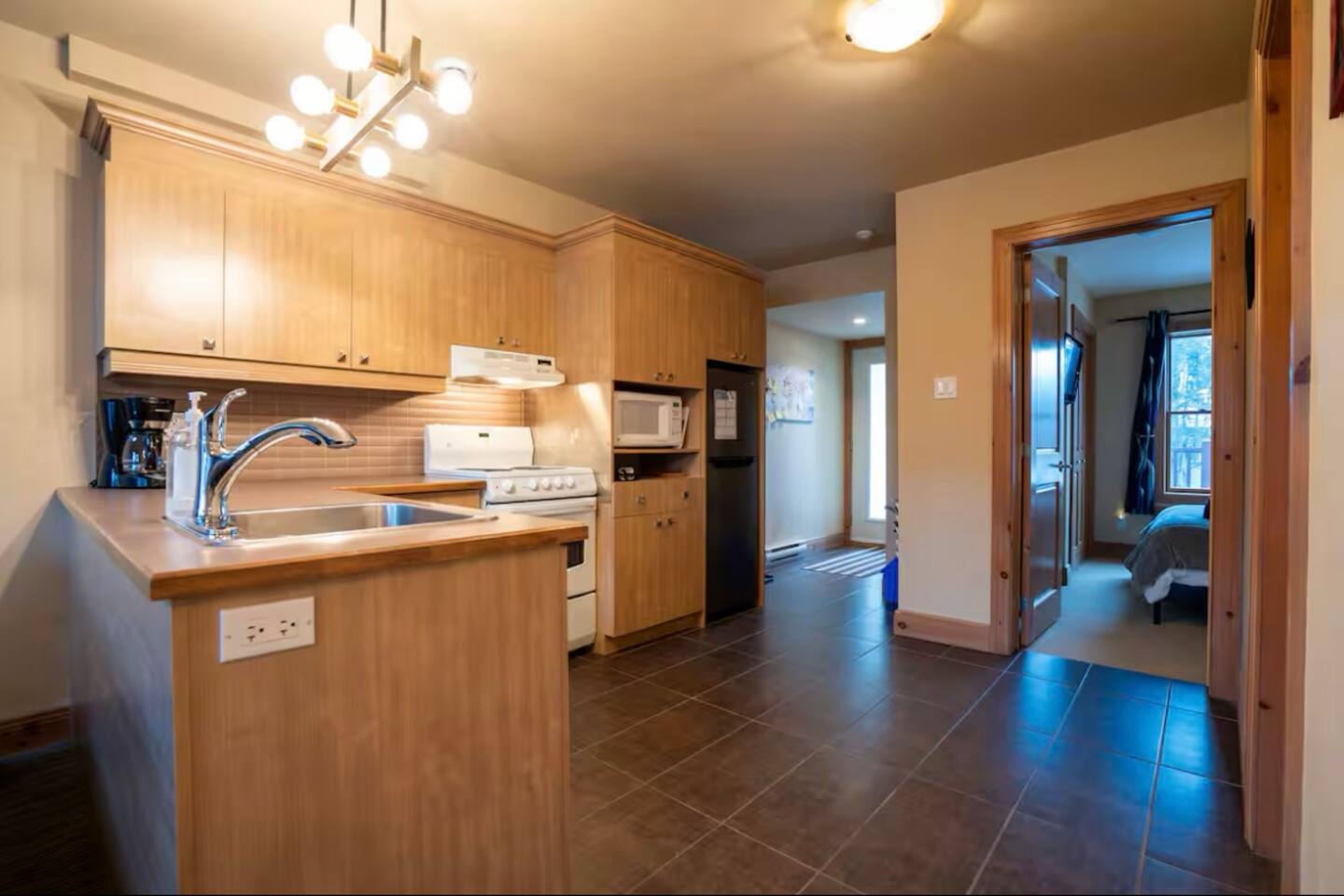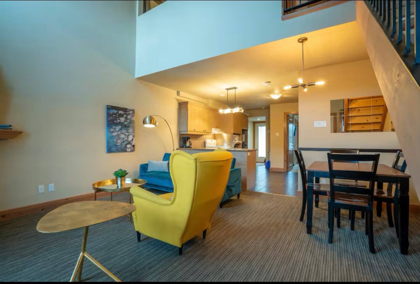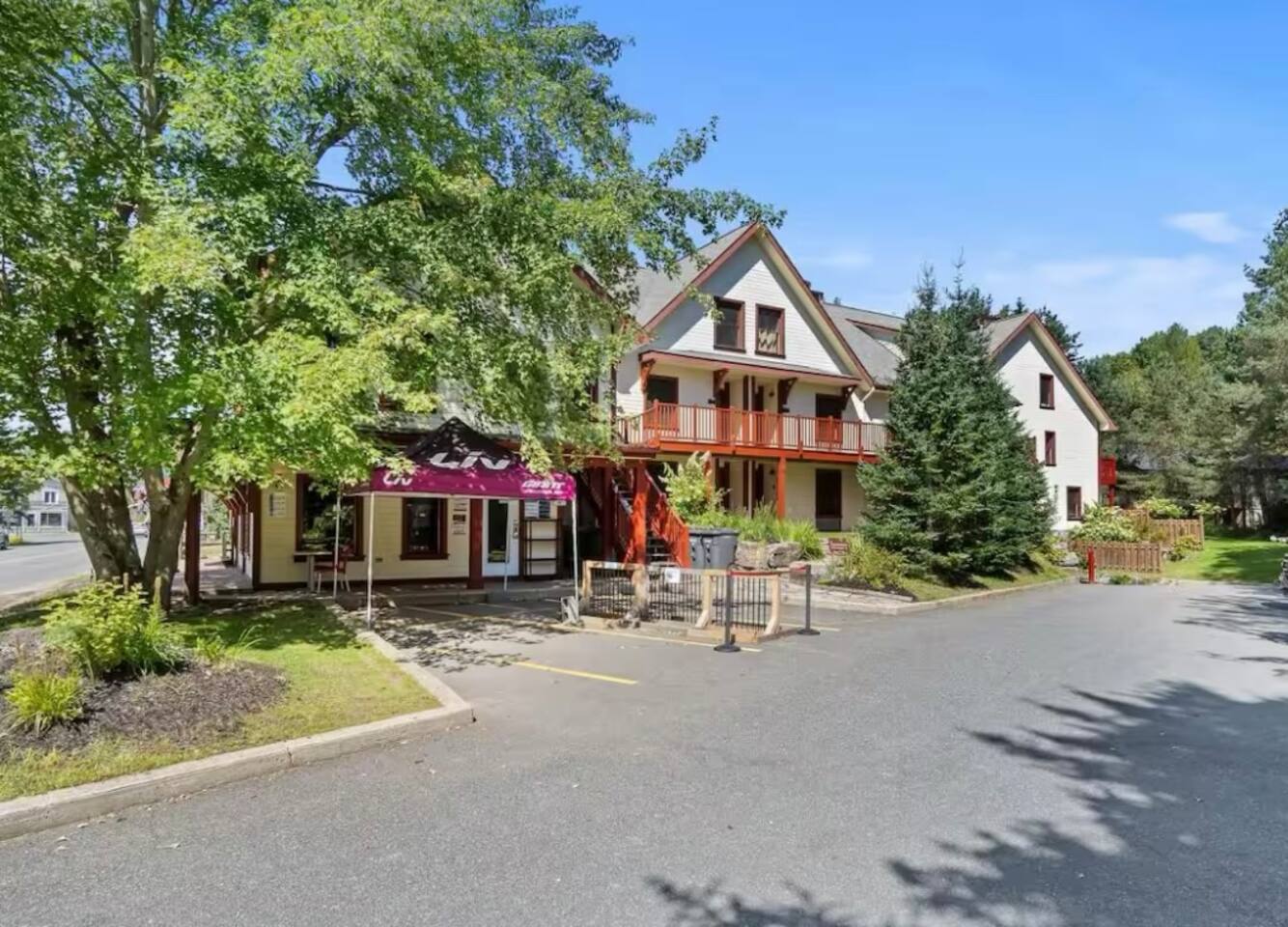Step inside and feel right at home in a thoughtfully designed space that blends modern comfort with cozy charm. The open-concept living and dining area is perfect for unwinding after a day of exploring, while the fully equipped kitchen has everything you need to prepare delicious meals. Whether you’re brewing your morning coffee or cooking a full dinner, you’ll have all the conveniences at your fingertips. Both bedrooms feature plush queen-sized beds, inviting you to sink in and relax after an adventurous day. Soft linens and comfortable furnishings ensure a restful night’s sleep, while two full bathrooms provide added comfort and privacy for guests. The upper mezzanine bedroom includes an en suite bathroom. This condo’s prime location makes it easy to experience everything Mont-Tremblant has to offer. You’re right next to the famous Petit Train-du-Nord trail, perfect for biking, walking, and soaking in the stunning scenery. In just 12 minutes, you can be at the Mont-Tremblant resort, where world-class skiing, hiking, and outdoor activities await. And for those who love exploring charming local spots, you’re just a five-minute walk to the heart of downtown Tremblant . A vibrant street filled with boutiques, restaurants, and cozy cafés. Whether you’re craving a delicious meal, a unique shopping experience, or a relaxing coffee break, you’ll have it all just steps away. No matter the season, Mont-Tremblant is a dream destination. In winter, hit the slopes, try snowshoeing, or cozy up in a local café. In the warmer months, kayak on Lac Tremblant, explore the lush hiking trails, or enjoy a round of golf at a top-rated course. After a day of adventure, return to your peaceful retreat—a stylish, comfortable space where you can relax and recharge for the next day’s activities. Tremblant LÉvasion has it all.