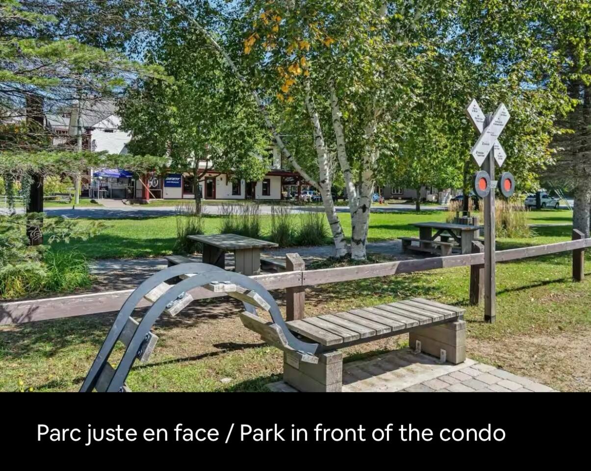 Welcome to your home away from home in beautiful Mont-Tremblant! This stylish and spacious two-bedroom, two-bath condo is the ideal retreat for adventurers and relaxation seekers alike. Centrally located in the heart of downtown Tremblant—quick access to nature and outdoor activities right outside your door, (the famous Petit train Du Nord)while being just minutes from the resort and ski hill.Walking distance to local cafés, restaurants and shops. Free shuttle bus service to resort and ski hill
