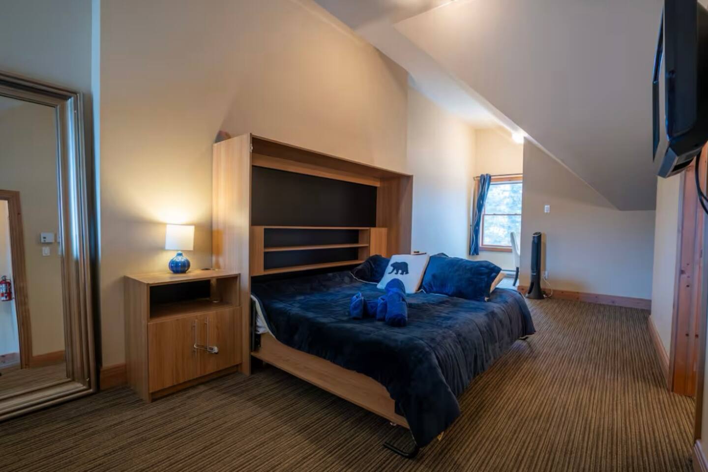 Free parking onsite; EV charger just down the street; Shuttle bus that takes your right to the ski hill.
