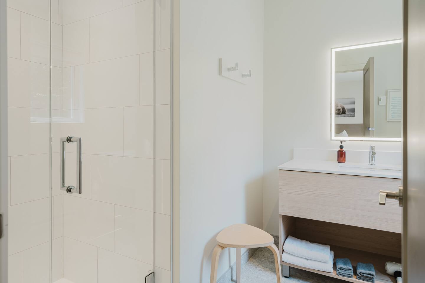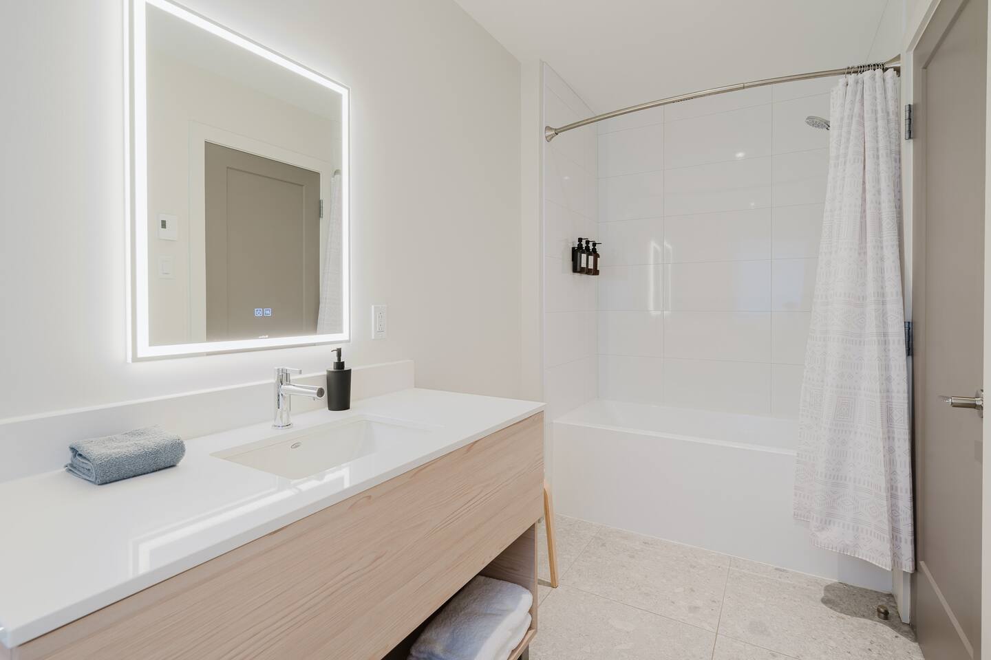 Escape to this beautiful three-bedroom townhouse in the heart of Mont-Tremblant, where comfort and convenience come together. Each of the two upper floor bedrooms are private suites with their own full bathroom and TV. The main floor bedroom is an open studio style room, where you’ll find a cozy living room with a fireplace and a small kitchenette equipped with a mini fridge, microwave, toaster oven .The perfect set up for a group of guests looking for privacy while still under the same roof.