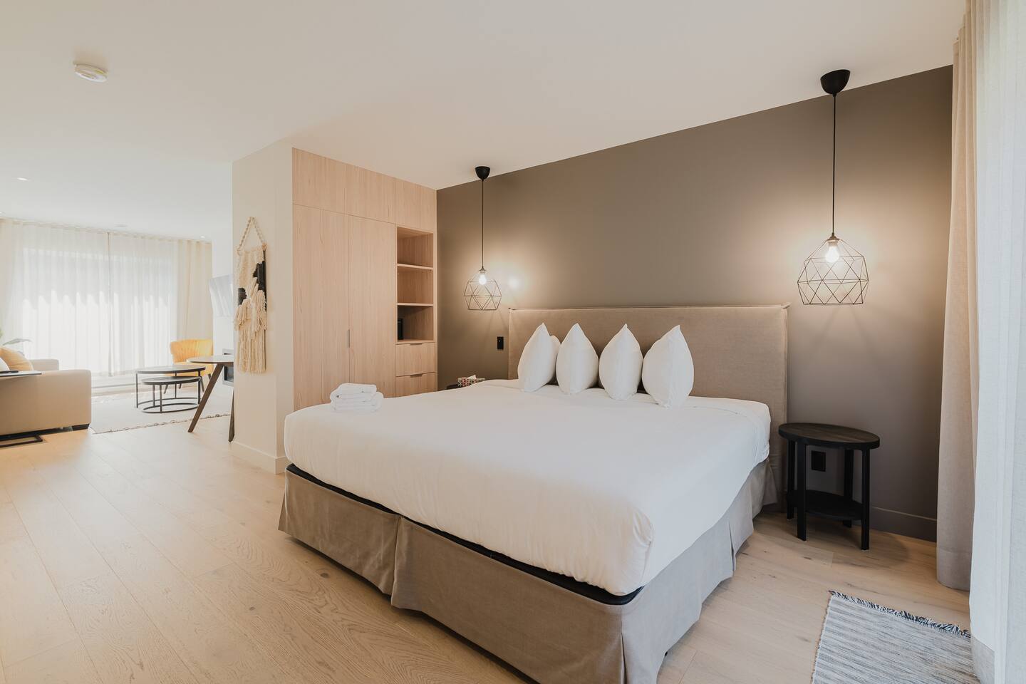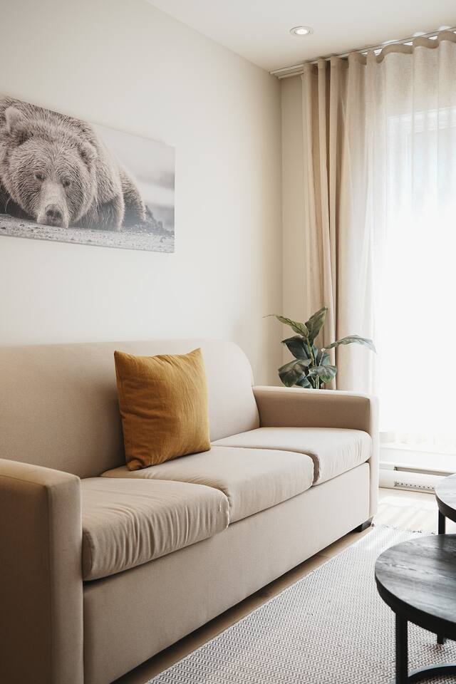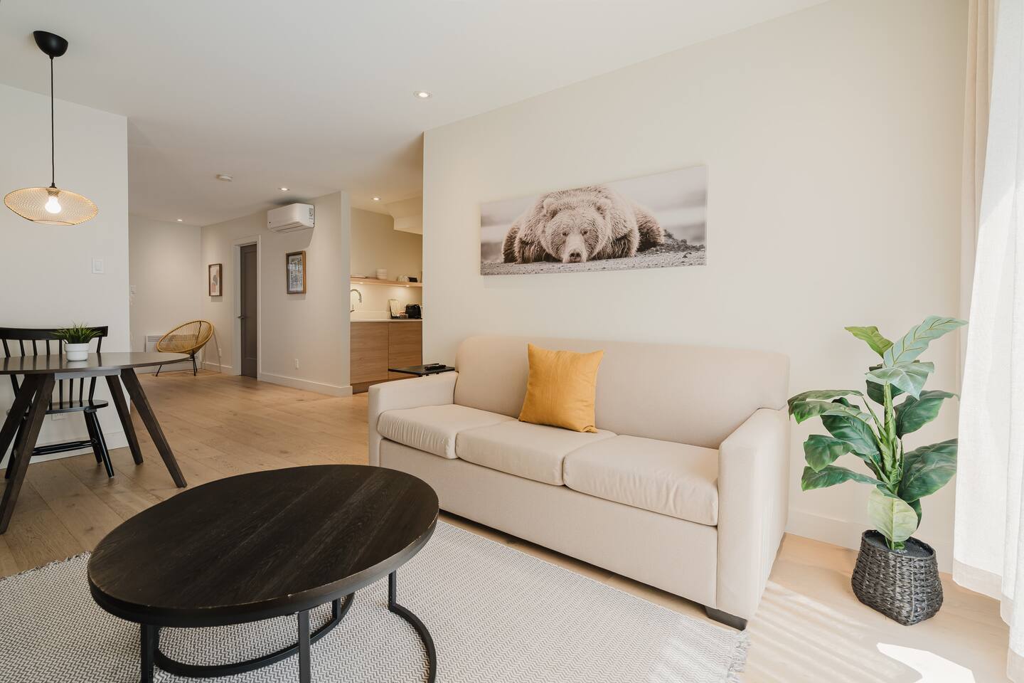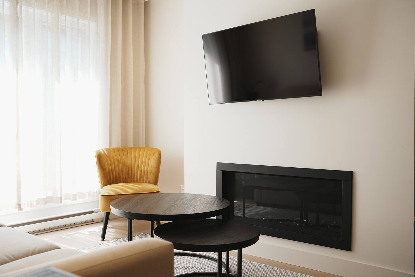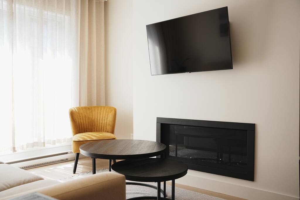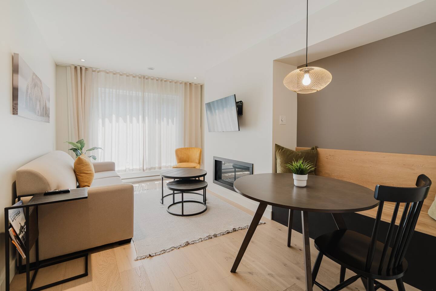 Welcome to your private studio retreat in the heart of Mont-Tremblant.This stylish, modern resort suite features a cozy fireplace, a luxurious king-sized bed, a sofa bed and a fully equipped kitchenette for your convenience. Immaculate and thoughtfully designed, it’s the perfect blend of comfort and charm. Centrally located, this hotel resort is just minutes from Tremblant’s ski slopes, trails, restaurants, and village life—making it the ideal getaway for relaxation and adventure alike.